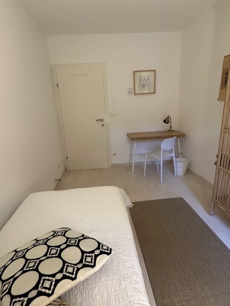 Sangha-Mitglieder erhalten ein eigenes Schlafzimmer, die anderen Räume werden gemeinschaftlich genutzt.